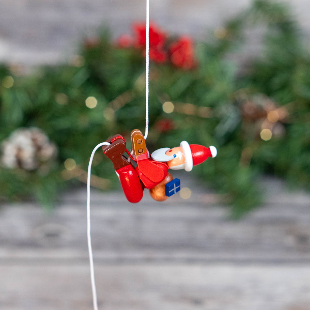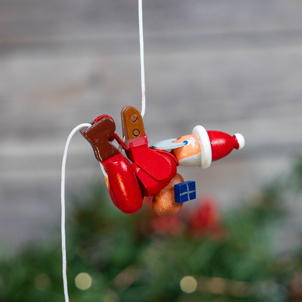 Experience the joy of Christmas with our Animated Climbing Santa, a charming addition to any festive decoration. Expertly crafted in the style of traditional German Erzgebirge art, this Santa figurine climbs up and down a string, bringing laughter and joy to every home.