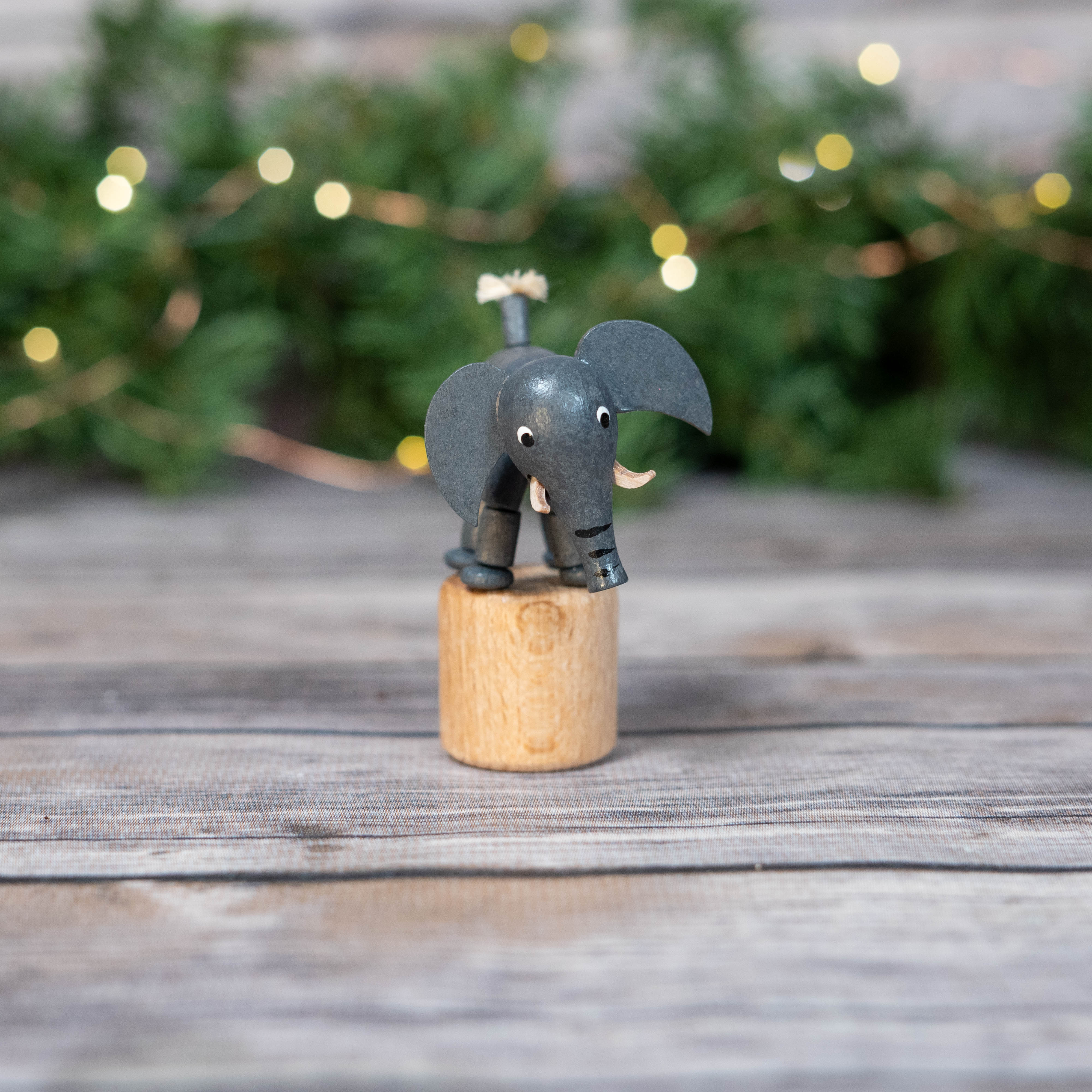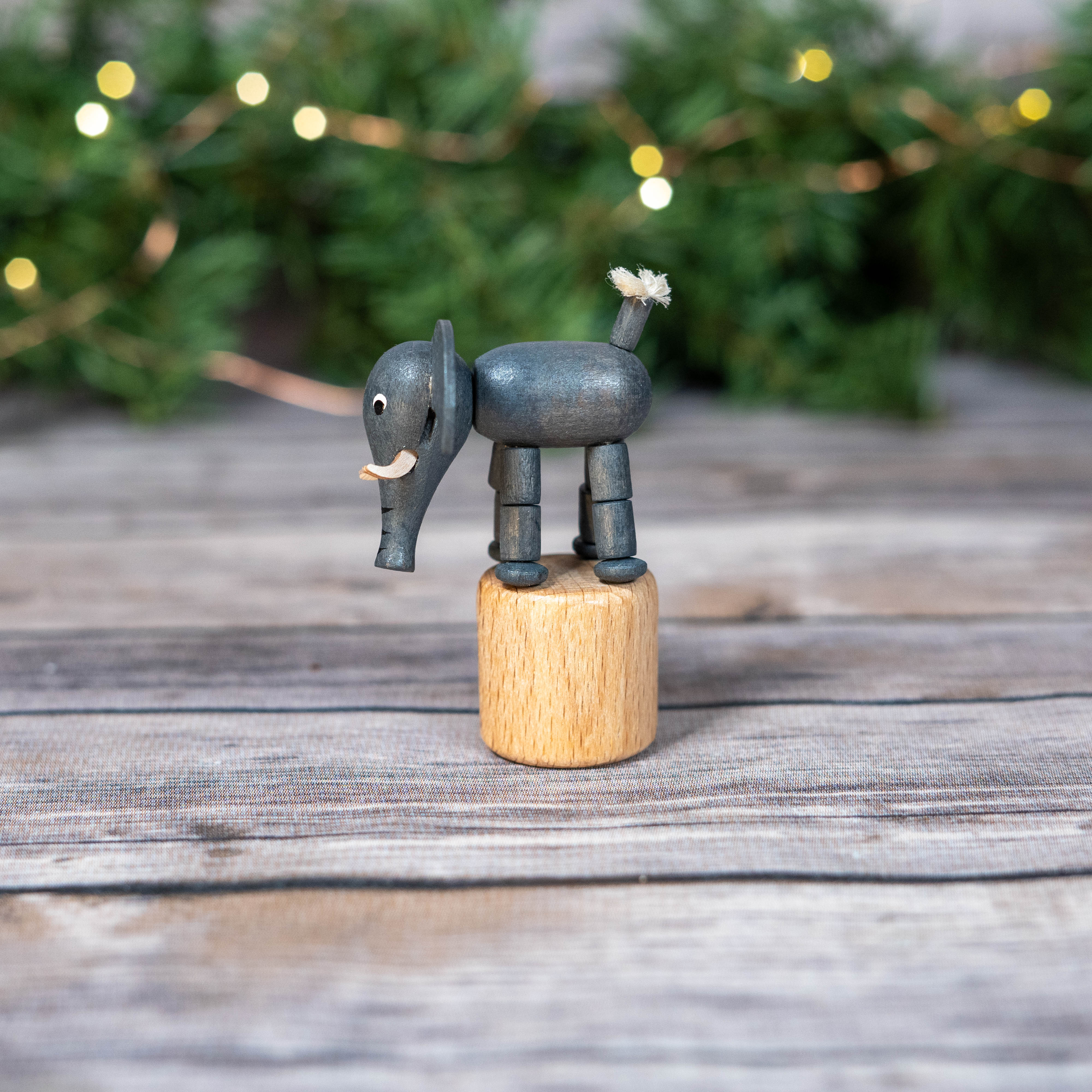 Introducing our delightful Wobbly Animal Elephant Toy, meticulously handcrafted in the traditional workshops of Germany. This unique toy features a functional design where pressing a button causes the elephant to amusingly topple over, evoking joy and laughter. Perfectly sized at 8 cm (3.1 inches), it is a charming addition to any child's play collection.
