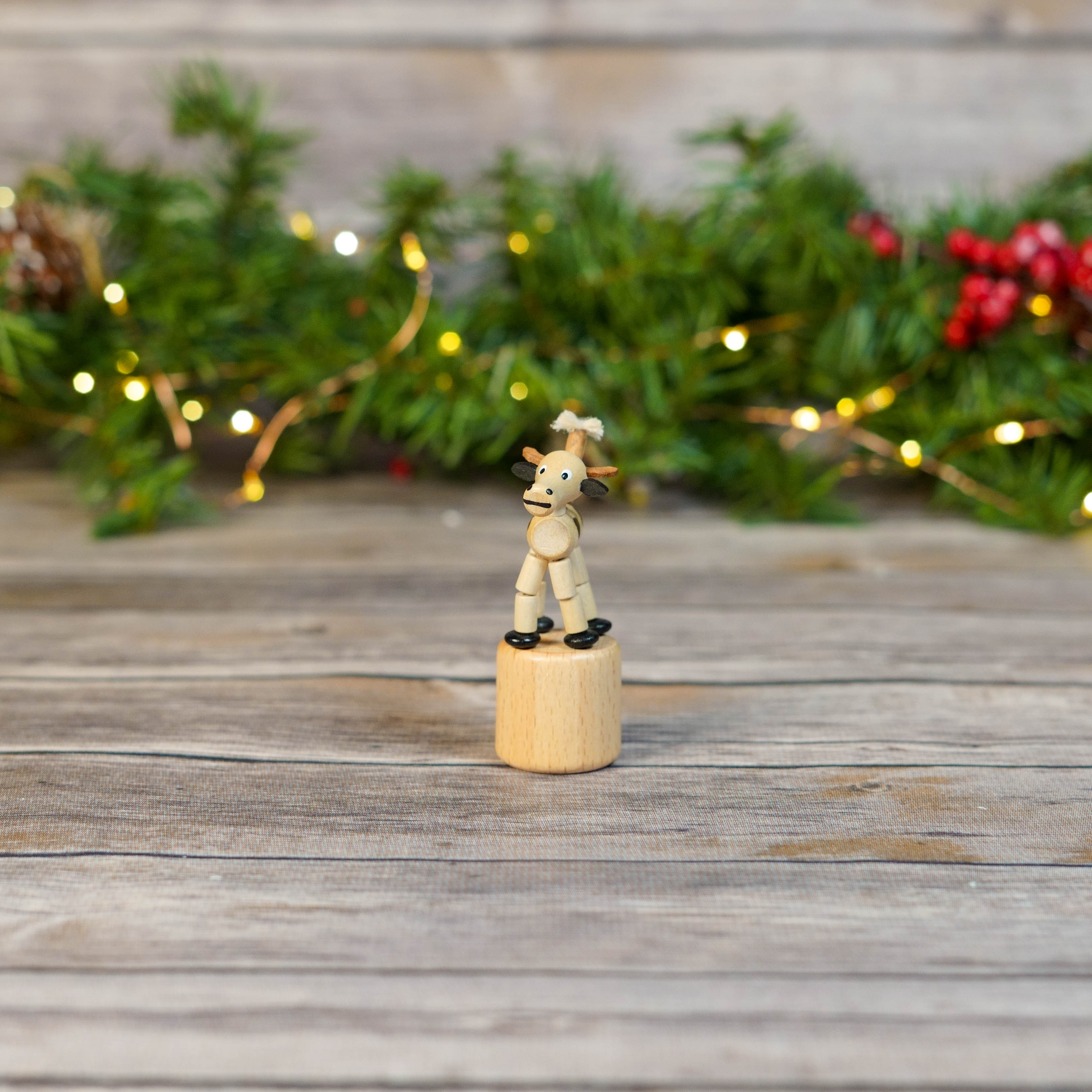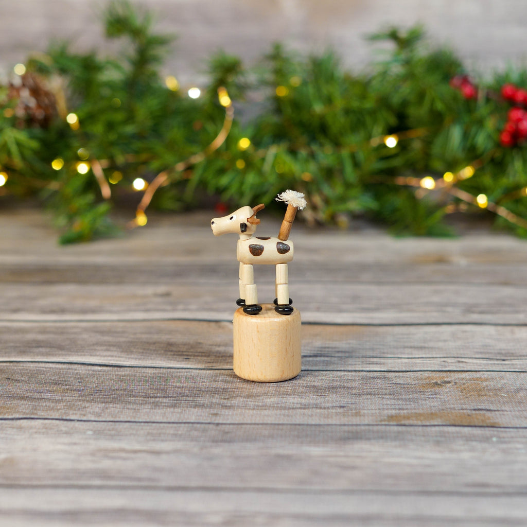 Introduce your children to the delightful Wobbly Animal Cow Toy. Crafted from high-quality materials, this charming toy features a unique wobbly mechanism that will amuse and entertain. Simply press the button at the base to see the giraffe amusingly topple over, only to stand back up again!