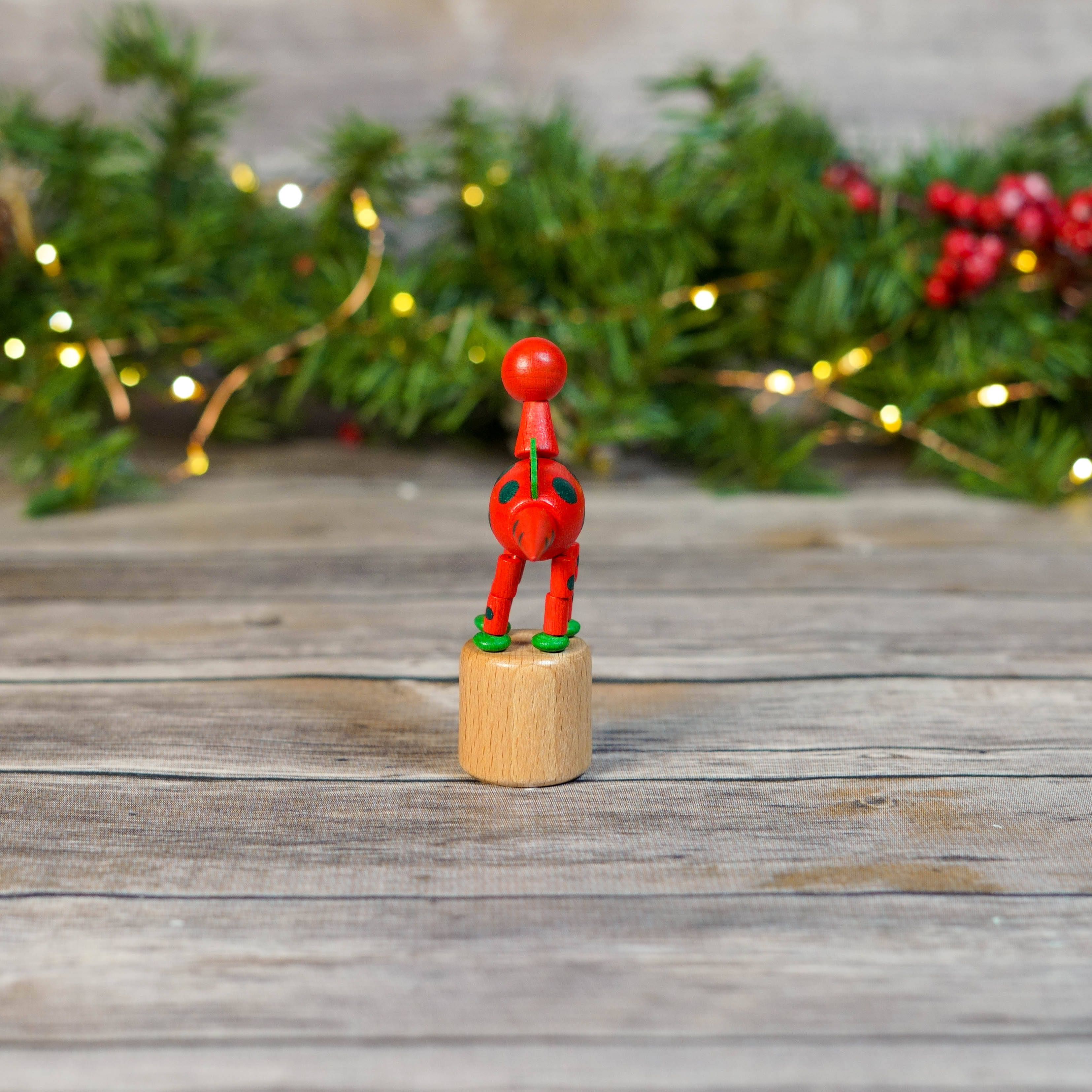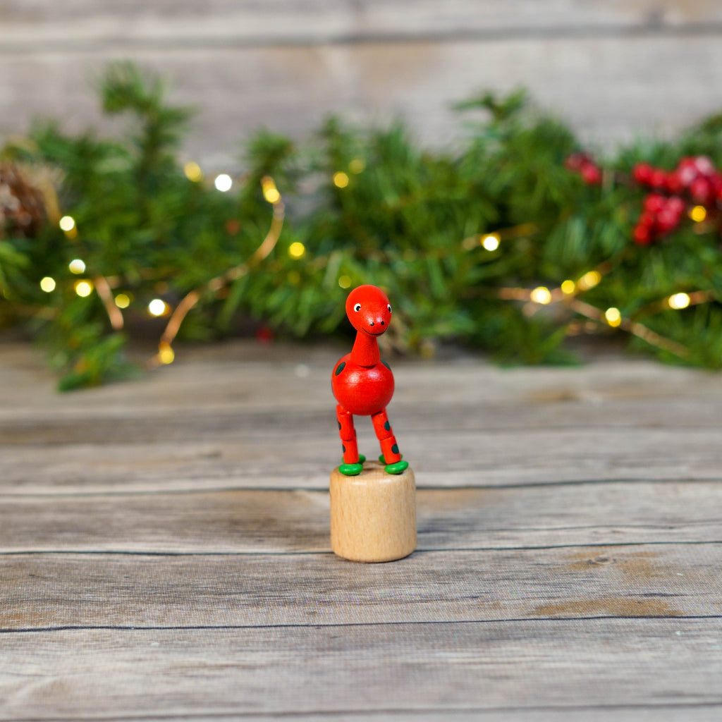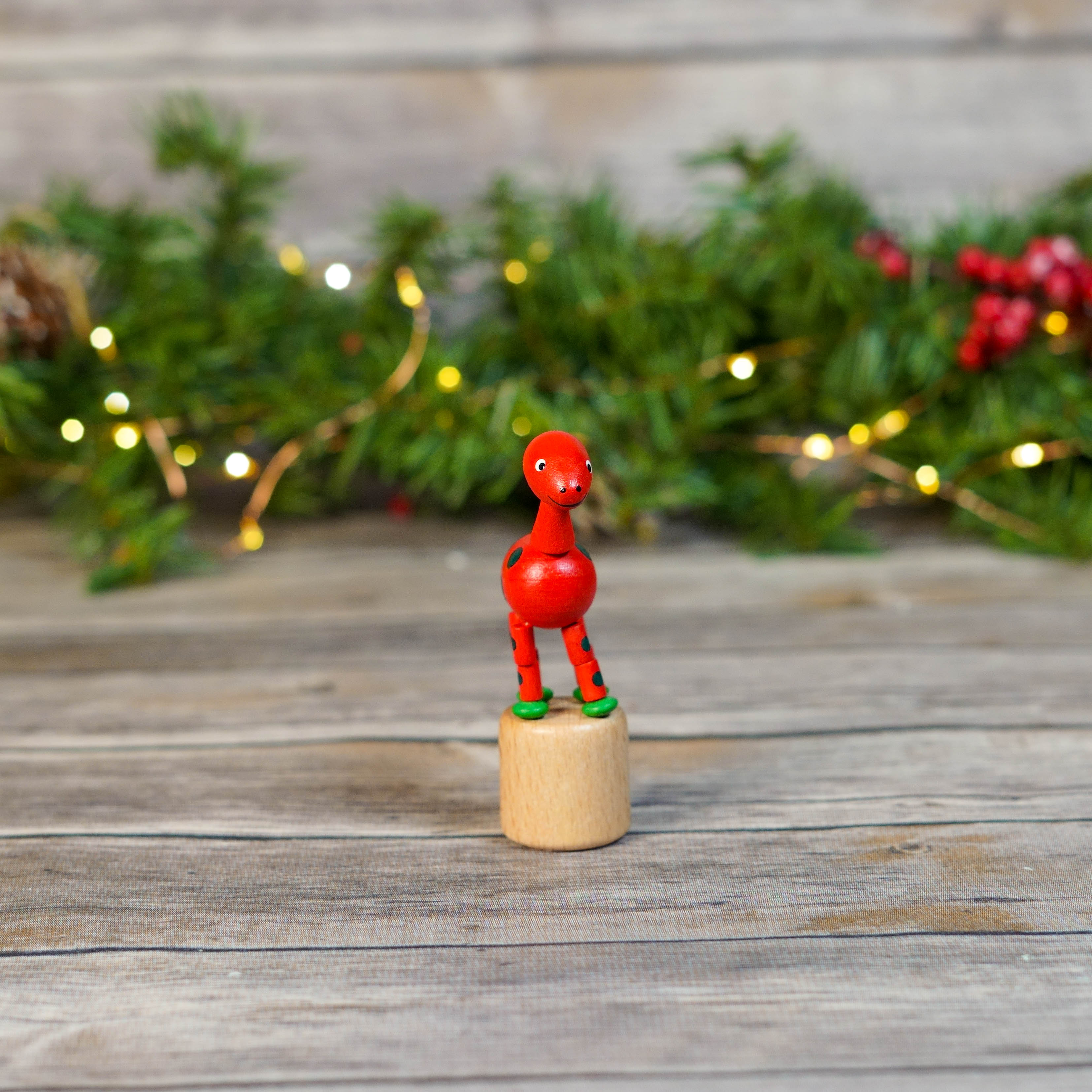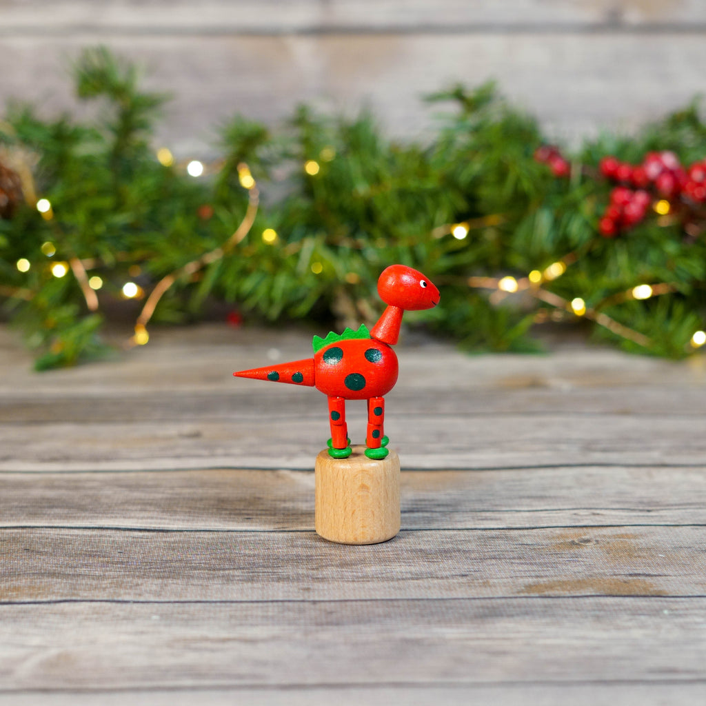 Introducing the delightful Wobbly Animal Red Dinosaur Toy, a charming addition to any child's toy collection. Crafted with care, this toy brings a touch of whimsy and interactive fun. Press the button and watch as the dinosaur joyously topples over, only to spring right back up!