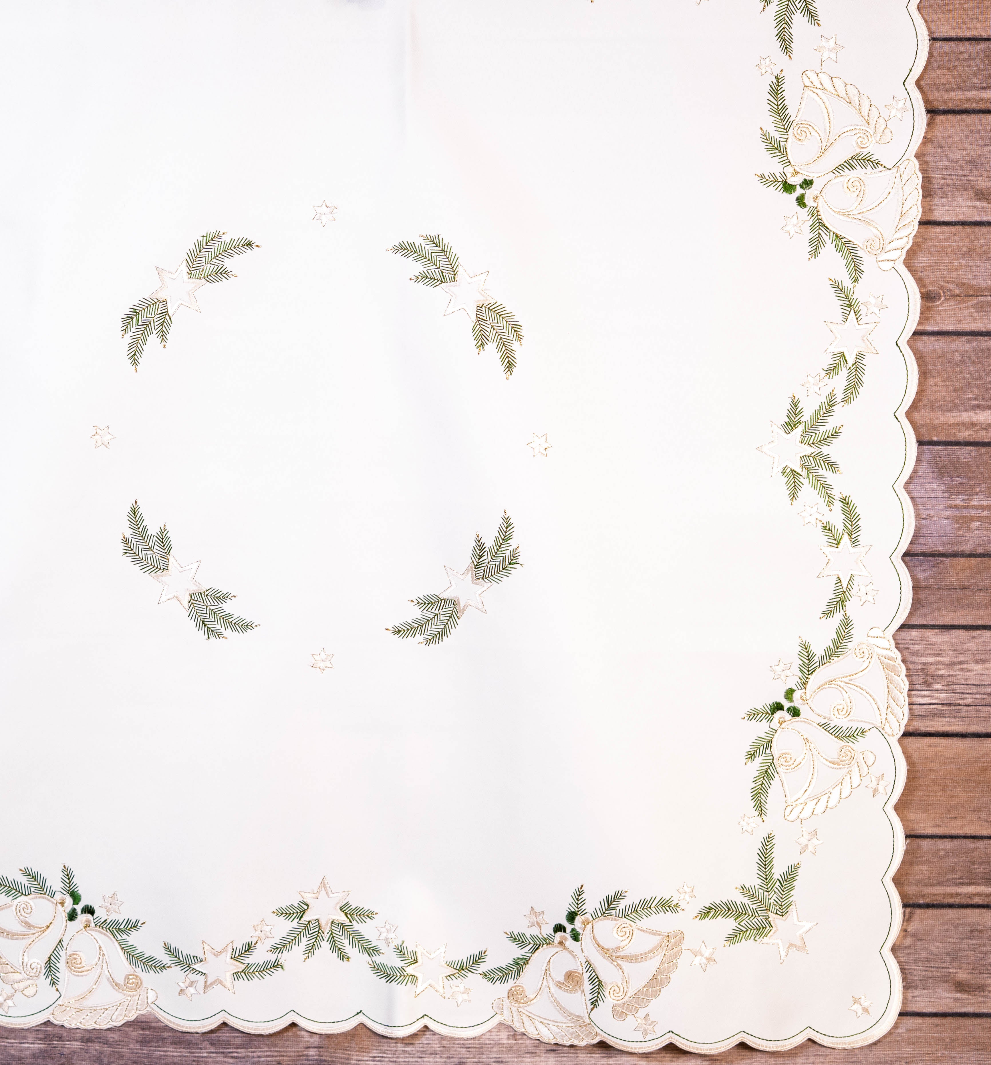 Add a touch of elegance to your holiday decor with our Satin Beige Table Cloth with Bells. This beautifully crafted tablecloth measures 85x85 cm (33.5 inches), making it an excellent choice for both small and large gatherings.