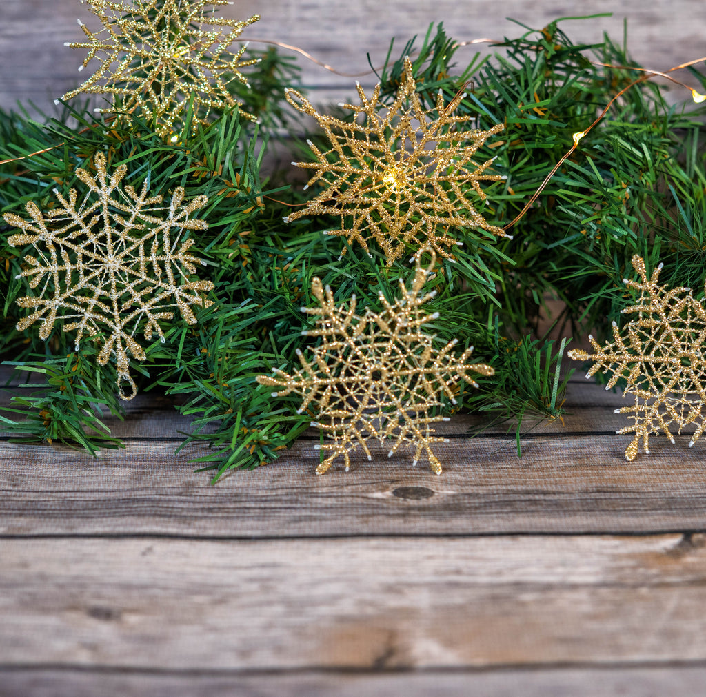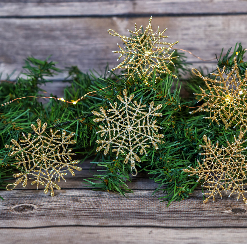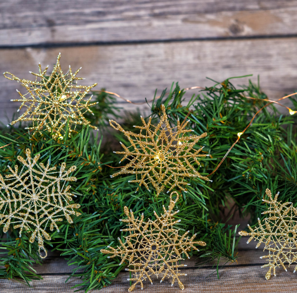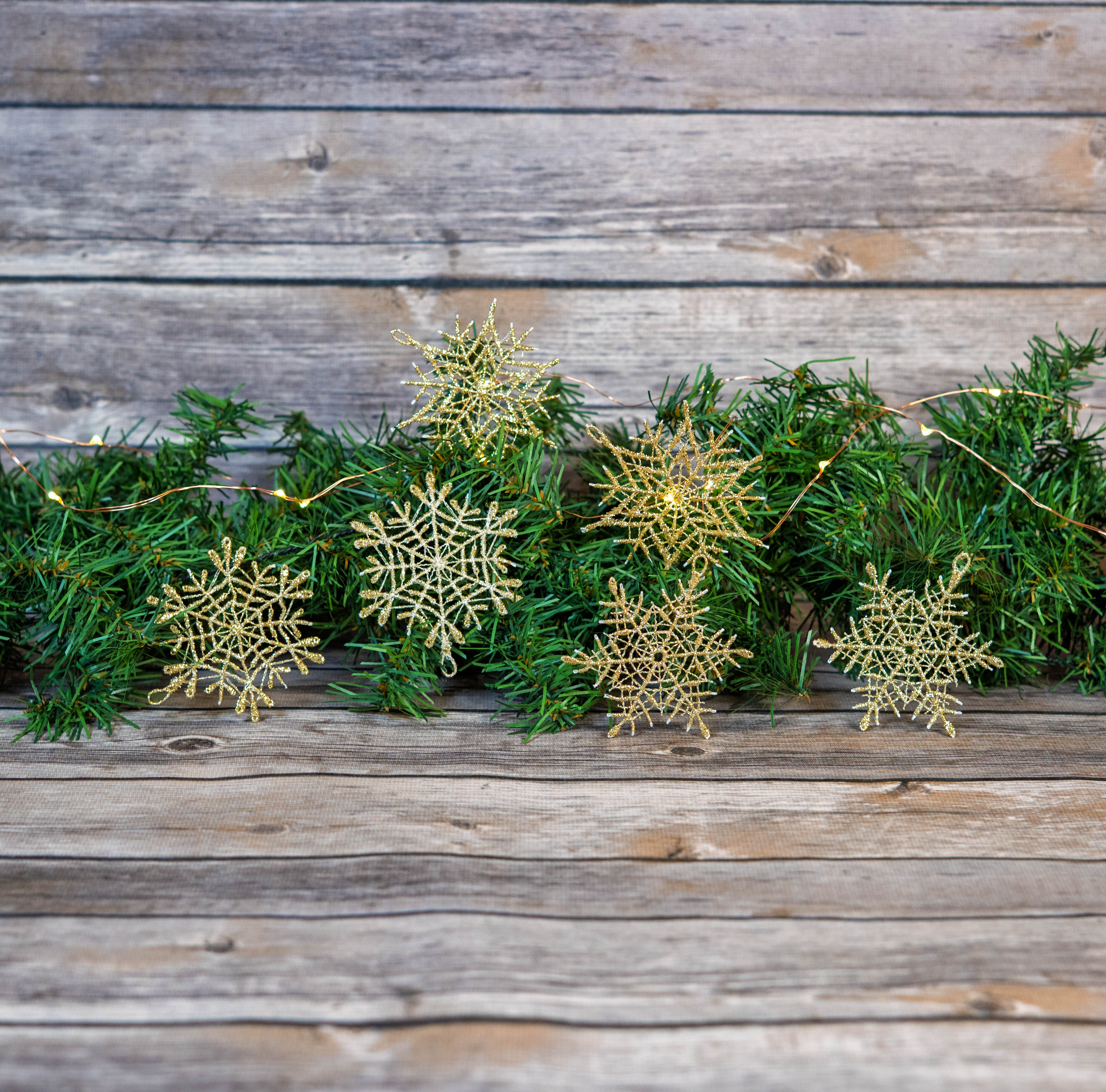 Add a traditional yet stylish flair to your festive decorations with our White & Gold Lace Snowflake Ornament. Crafted with precision, these ornaments bring the essence of a white Christmas inside your home. Each set contains six beautifully designed snowflakes, ideal for decorating your Christmas tree or as a charming window display.
