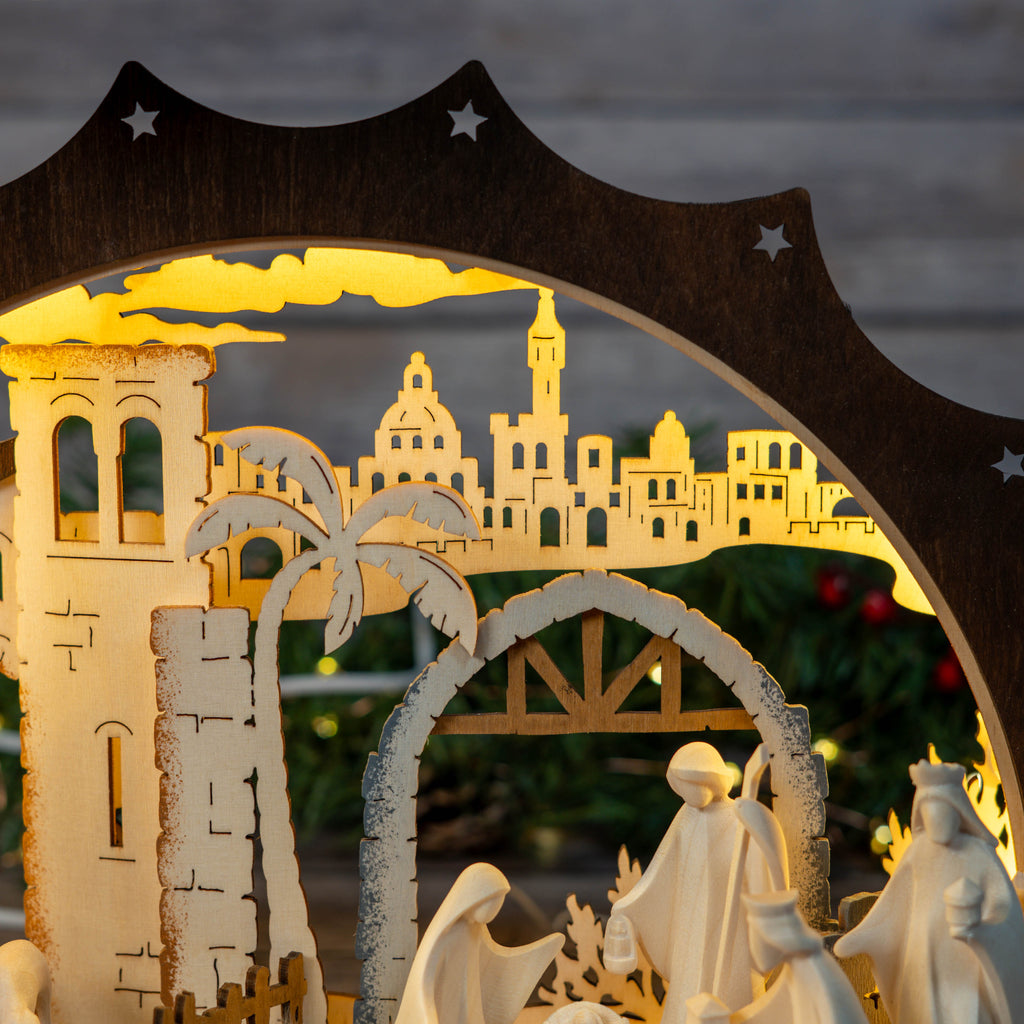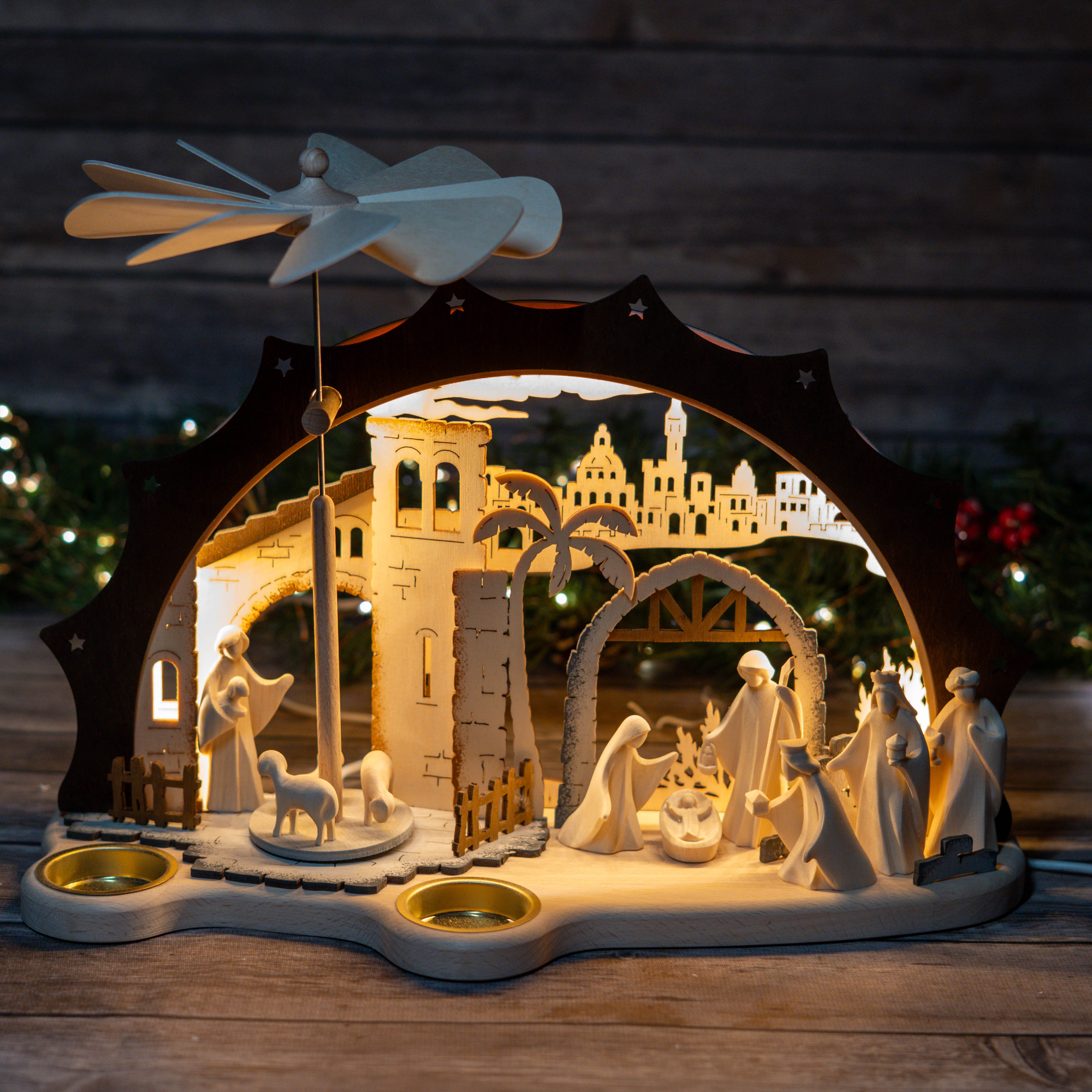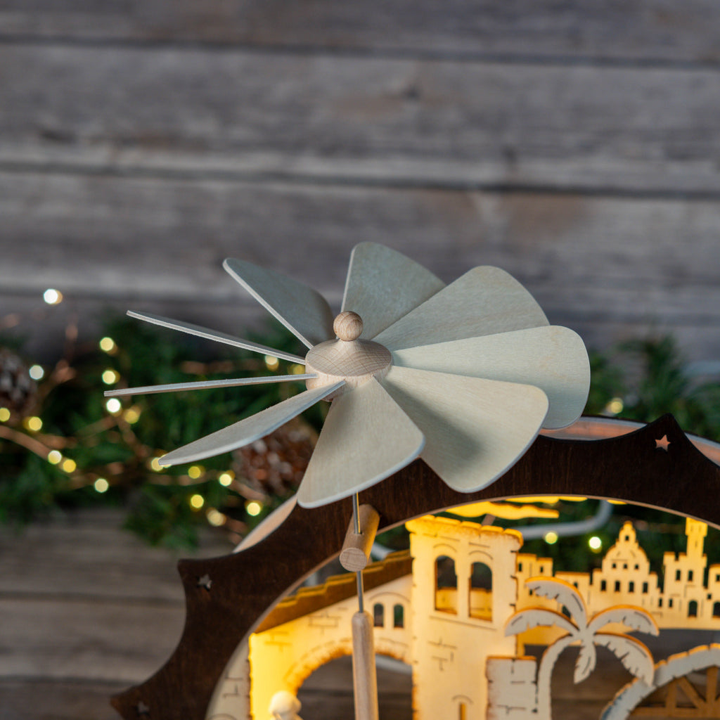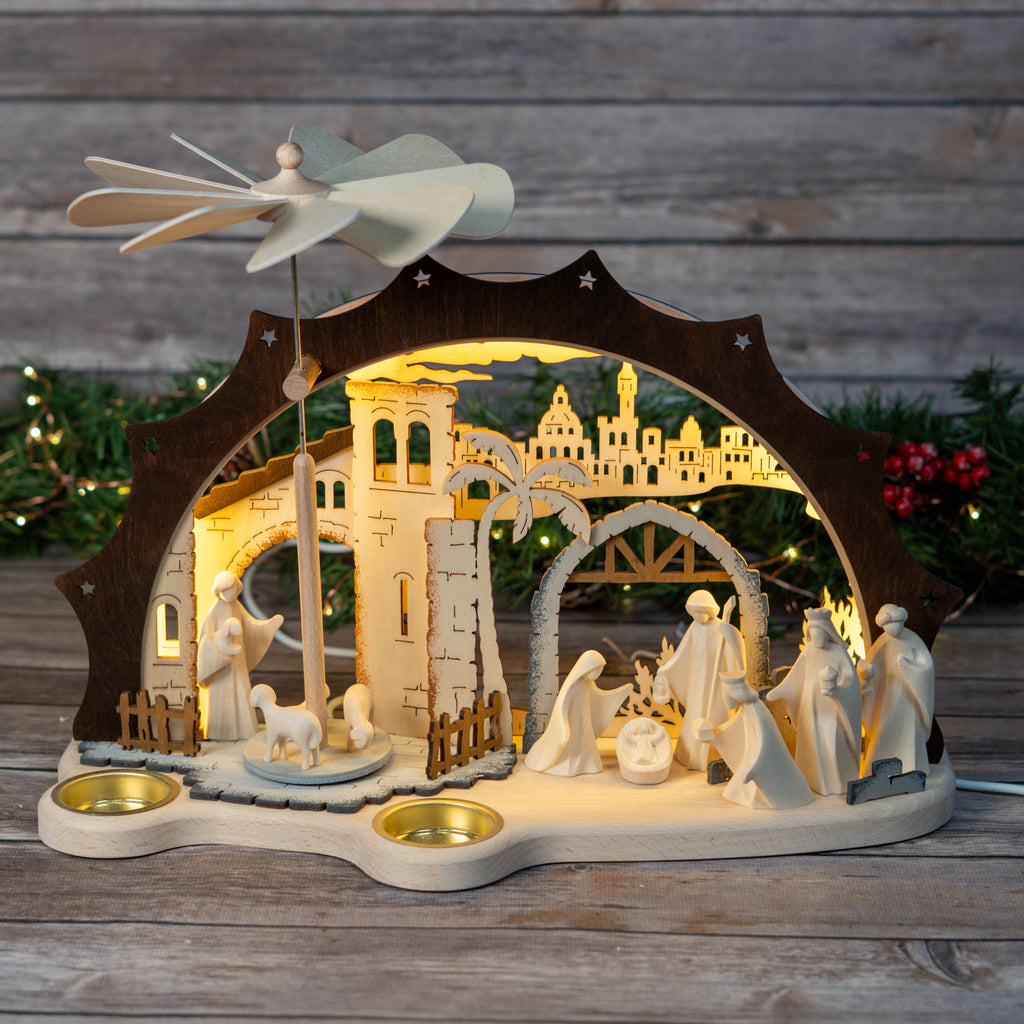 Lighted Bethlehem Schwibbogen with Nativity Pyramid