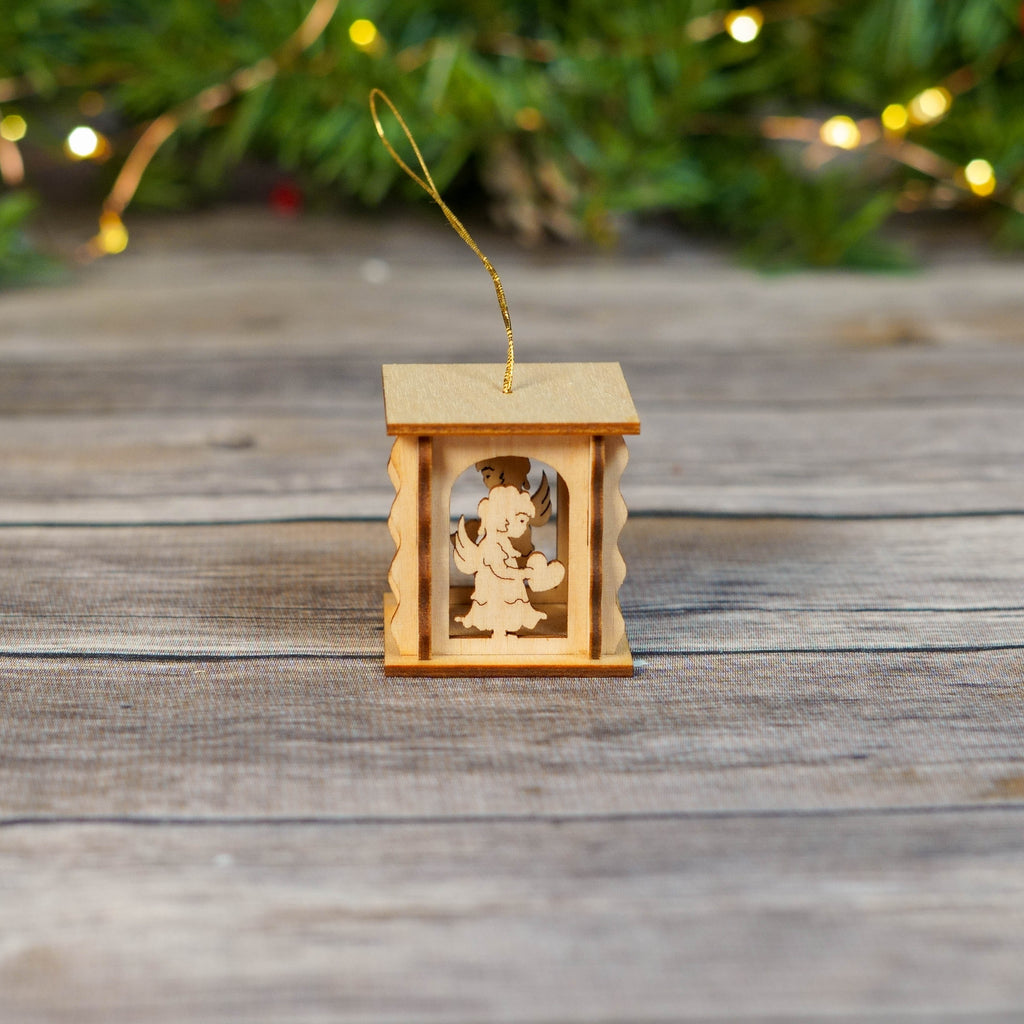 Add a touch of traditional German craftsmanship to your holiday decor with this handmade 3D Ornament Lantern. Featuring four intricate Nativity scenes, including a star-lit depiction of Baby Jesus, this ornament embodies the festive spirit. It showcases the iconic Seiffen Church and includes symbols like Christmas bells and candles. Ideal for hanging on your tree or as a standalone decoration.