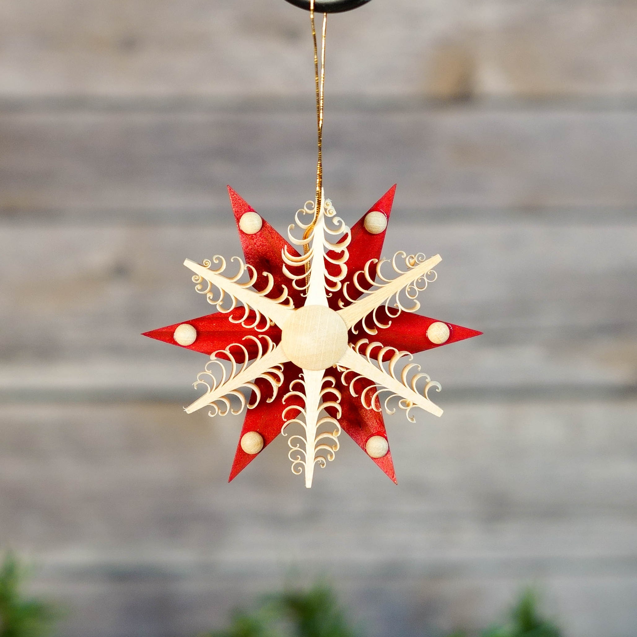 Ornament - 6 Point Snowflake with Red Background 8 cm - is backordered and will ship as soon as it is back in stock.